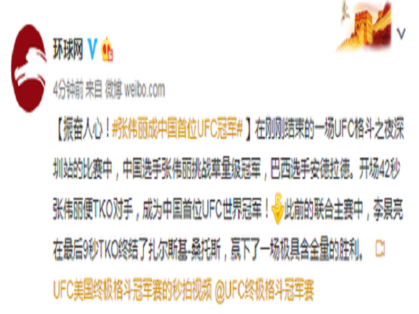 中國UFC首位冠軍誕生!張偉麗1分鐘內TKO巴西女拳王